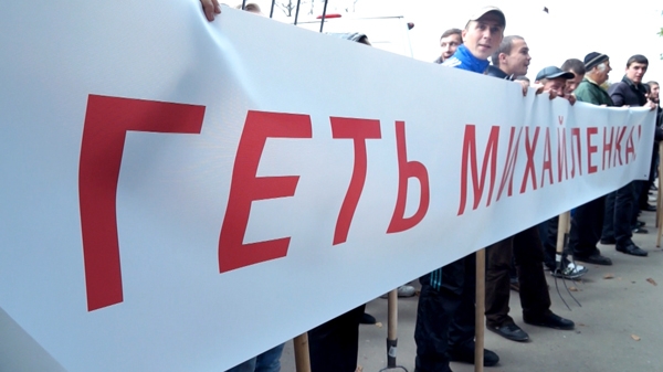 Сегодня, 1 октября в Немирове (Винницкая область) началась бессрочная акция протеста против главы Немировской РГА Петра Михайленко. Больше полутора тысяч человек вышло с вилами к зданию районной администрации и потребовали отправить отставку ее главу Михайленко.