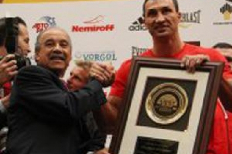 Сегодня, 4 октября, во время официальной церемонии взвешивания перед боем Кличко - Поветкин, Владимир получил награду лучшему боксеру мира по версии WBO.