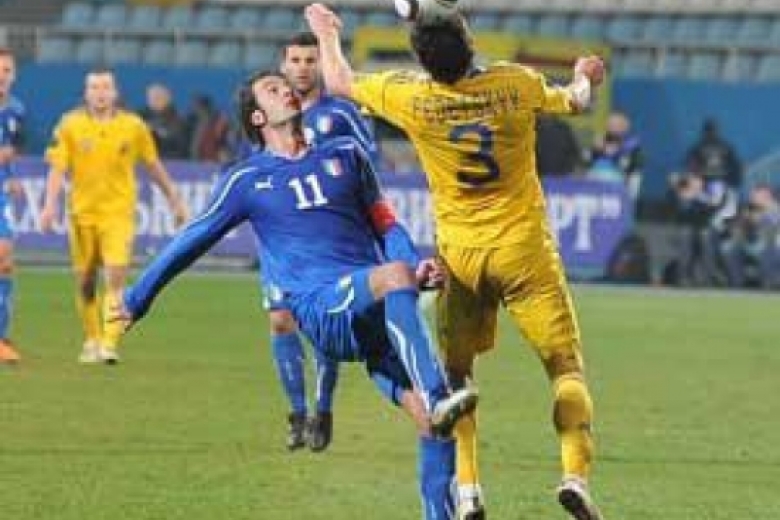 Украинские футболисты на правах хозяев поля начали поединок более активно, и в первой половине первого тайма имели две неплохие возможности, чтобы открыть счет: сначала Ракицкий попал в штангу, затем вратарь сборной Италии отбил удар Федецкого.