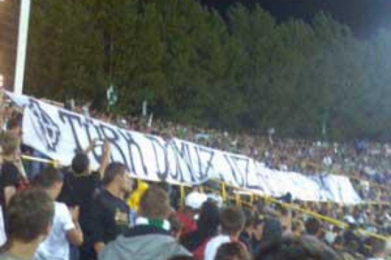 Надпись гласит: «Türk domuz uzakta Avrupa’dan», что можно перевести как «Турецкие свиньи, убирайтесь вон из Европы». Налицо ксенофобия и экстремизм, с которыми УЕФА ведет очень жесткую борьбу. Этот штраф может стать началом глобальных проблем «Карпат», ведь во время осенних матчей команды в Лиге Европы та трибунах «Украины» появлялись не менее агрессивные и просто фашистские баннеры. Так на игре против французского «Пари Сент-Жермена» фаны вывесили символику дивизии СС «Галичина» и 33-й гренадерской дивизии СС «Шарлемань» дополненные надписью «Pour L’Europe Blanche», то есть, «за белую Европу». Неоднократно на матчах «Карпат» присутствовал и портрет Бенито Муссолини с его девизом «Credere!Obbedire!Combattere!» - «Думать! Служить! Сражаться!». О портретах Бандеры и вовсе можно не вспоминать, они обязательный атрибут во время игр «Карпат».