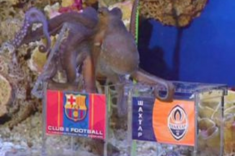 Сегодня утром в Алуштинском аквариуме осьминог Павлик сделал прогноз на исход ответного матча четвертьфинала Лиги чемпионов между донецким «Шахтером» и испанской «Барселоной».