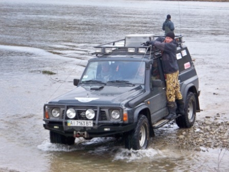 Покинув Борислав, колонна джипов направилась в горы. Первым препятствием стала река Стрый, впоследствии пройденная вброд несколько раз. Во время подготовки к одному из форсирований Стрыя довелось пообщаться с местным жителем Стефаном: он удивился, что мы вообще сюда сумели добраться. Оказалось, что выживают в этих местах в основном благодаря собственному огороду и лесу. Ответ на вопрос, а как же разговоры о заработке благодаря близости словацкой и польской границ был краток: «Не навозишься».