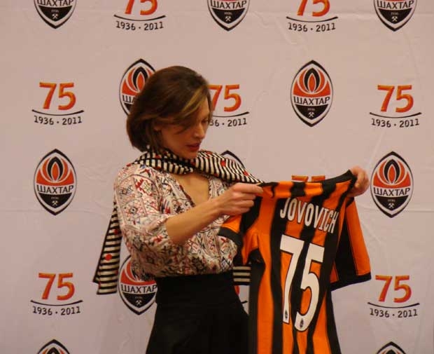 На пресс-конференции, посвященной празднованию 75-летия ФК «Шахтер», знаменитой актрисе Миле Йовович презентовали именную футболку клуба. Вот только не уточнили на какой позиции будет играть звезда.
