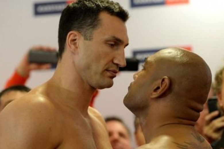 Завтра в полночь по Киеву начнется бой Владимира Кличко и Алекса Леапаи, в котором украинец будет защищать свои чемпионские пояса WBO, IBF и WBA. А сегодня боксеры прошли церемонию взвешивания и многих удивили. Австралиец, который на 15 см ниже оппонента (183 см против 198 см) оказался тяжелее нашего чемпиона! Леапаи завесил 112,5 кг, Кличко - 112,2 кг. При этом традиционная дуэль взглядов выглядела занятно: Кличко смотрел на соперника сверху вниз. Впрочем, тренер украинца Джонатан Бэнкс уверен: "Будет хороший бой".