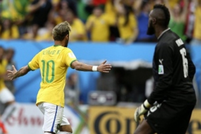 Матч закончился со счетом 4:1, нападающий хозяев чемпионата мира Неймар забил сотый гол турнира