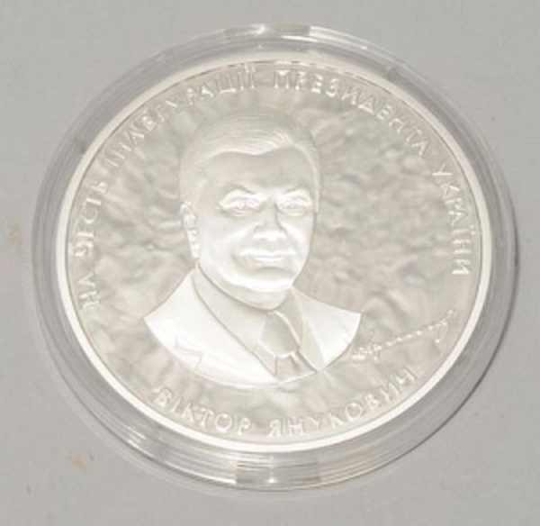 Она произведена из серебра, имеет диаметр в 50миллиметров и вес в 62,2 грамма. Она была изготовлена в 2010 году. Ранее такие же медали выпускались в честь инаугурации Виктора Ющенко (в 2005 году) и Леонида Кучмы (в 1999 году).