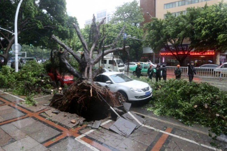 Улицы городов напоминают реки, люди сегодня добирались на работу по колено в воде. Проезд по многим дорогам затруднен - уровень воды достигает полуметровой отметки. Тайфун принес грозы, град и штормовой ветер с порывами до 40 м/с. Восток Китая еще не восстановился от тайфуна Раммасун, жертвами которого в начале недели стали 56 человек.