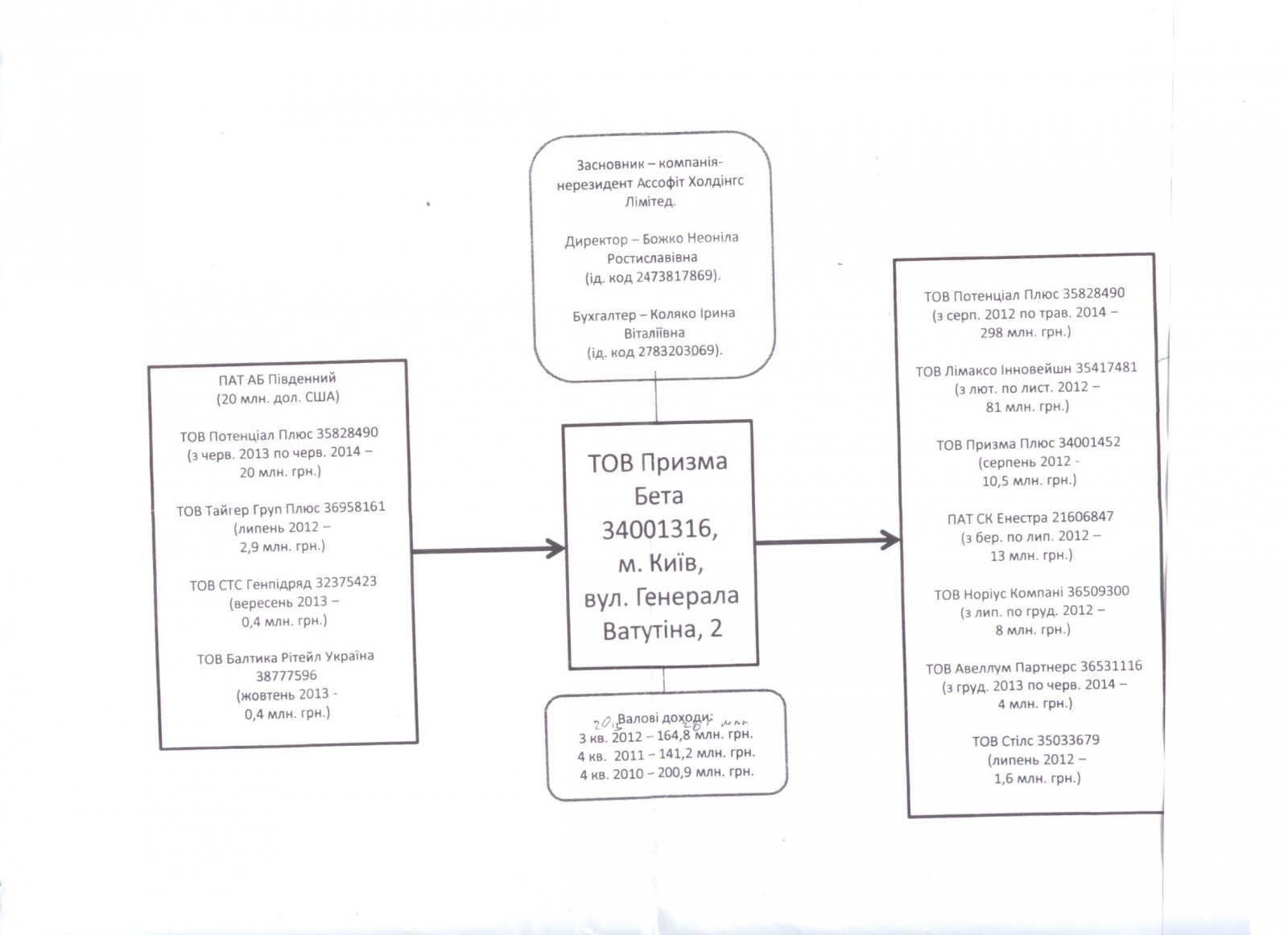 Суть схемы следующая. Подконтрольные совладельцу ТРЦ Андрею Адамовскому руководители ООО «Призма Бета» в различные периоды времени с 2012 по 2014 гг вывели на свои структуры более 400 млн грн (см. схему). По данным наших источников, все операции были призваны вымыть реальную прибыль из ТРЦ, чтобы ничего не досталось партнеру Адамовского по бизнесу - эстонцу Хиллару Тедеру и его девелоперской компании Arricano (история партнерских отношений Тедера и Адамовского хорошо известна потребителю деловых новостей).