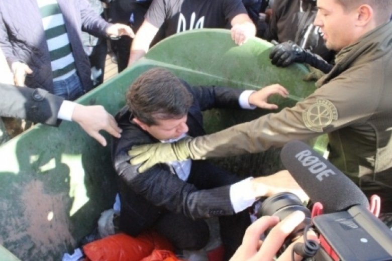Напомним, в минувшую пятницу, зампредседателя Ровенского облсовета Александра Данильчука активисты бросили в мусорный бак под крики "Ганьба!".