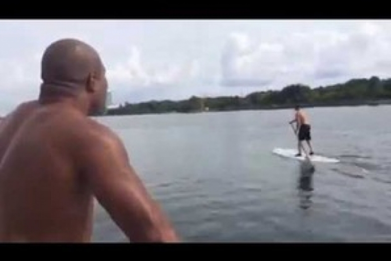 Как видно на видео, Шеннон Бриггс подплыл на моторной лодке к катающемуся на доске Владимиру. Кличко поинтересовался, чего тот хочет. Американский боксер-скандалист в типичной для себя манере завопил, мто это я чемпион, выходи на в ринг, я заберу у тебя твои пояса...