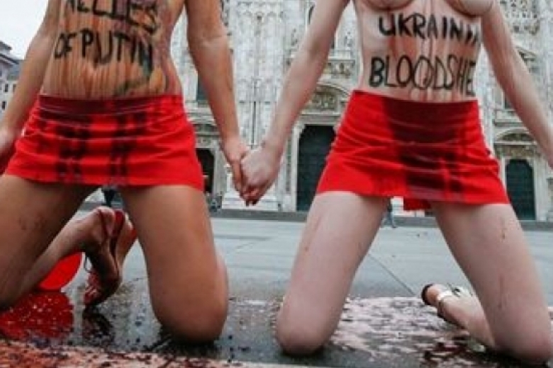 Курйози FEMEN встретили Путина на коленях и в красном вине (ВИДЕО)