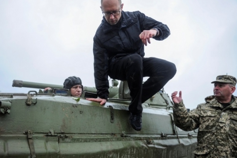 Курйози Как не служивший в армии Яценюк лез на боевую машину пехоты (ВИДЕО)