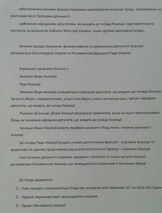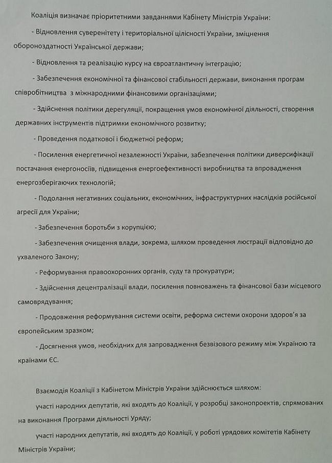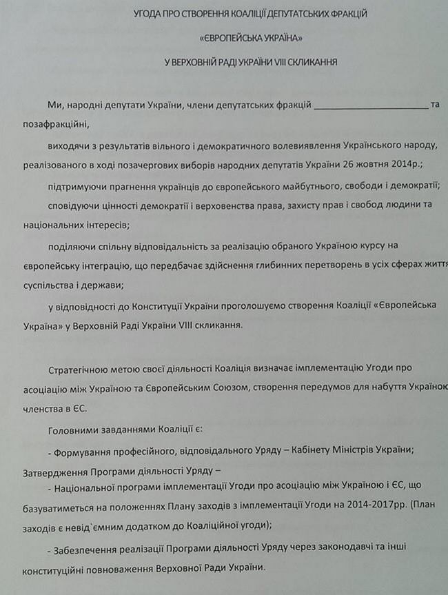 Фактически взявший первое место на парламентских выборах премьер Яценюк уже представил свой, альтернативный проекту Блока Петра Порошенко, текст коалиционного соглашения. Документ уже появился в свободном доступе в Сети.