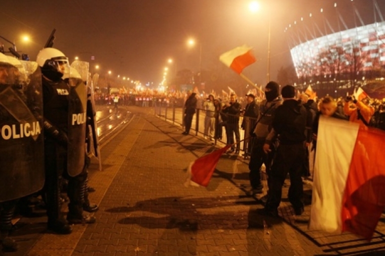 Празднование Дня независимости в Польше обернулось массовыми беспорядками. Националисты принялись громить все, что только видят, бросать в полицию булыжниками и стрелять сигнальными ракетами. В отличие от киевского майдана, полиция отреагировала моментально, применила спецсредства, водометы и в считанные часы разогнала демонстрантов
