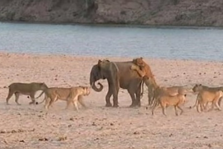 Ролик, на котором показано, как юный слоненок пережил атаку стаи голодных львов и даже сумел их распугать, взорвало интернет.