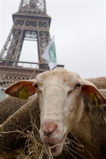 Французские фермеры привезли несколько десятков овец к подножию Эйфелевой башни в Париже. Таким образом они решили выразить свое недовольство экологической политикой правительства.