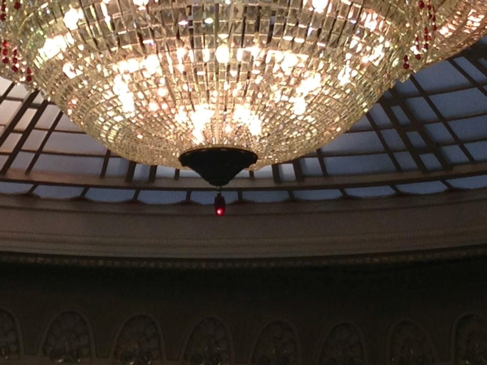 Действительно, на предмете интерьера висело что-то с красным свечением. Камера? Датчик противопожарной безопасности? В комментариях к посту приводились самые разные версии: от люстрометра до проектора, который воспроизводил голограмму экс-президента Януковича.