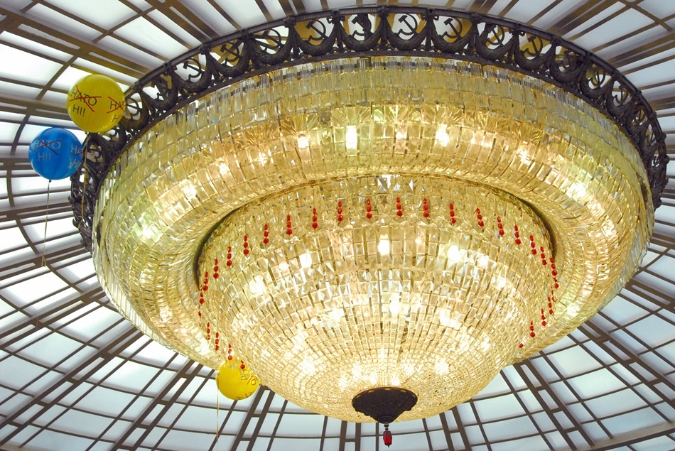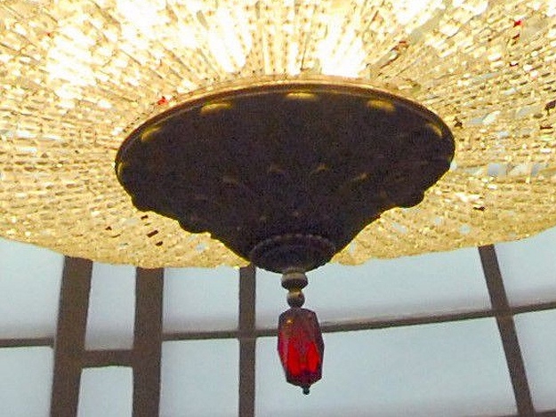 Как выяснилось, это не камера, не датчик и не проделки Госдепа, рептилоидов или высших сил. В аппарате Верховной Рады Vgorode рассказали, что это - всего лишь декоративный элемент самой люстры: высококачественное, крашенное, граненное стекло. Сама люстра сделана из того же материала. Кстати, на фото есть обрамление люстры в виде серпа и молота. Сейчас там ее уже нет.