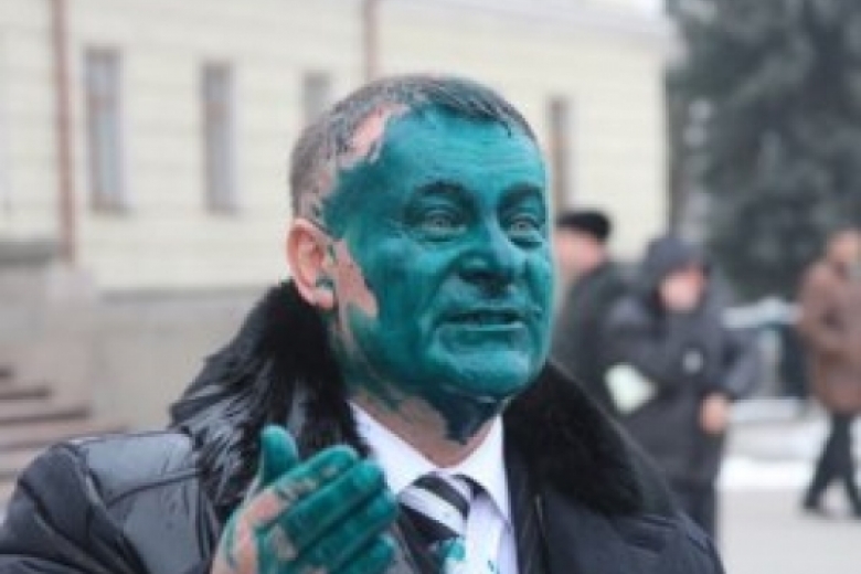 Депутат не побоялся выйти к собравшимся, но вступил сними в словесную перепалку и был облит зеленкой.