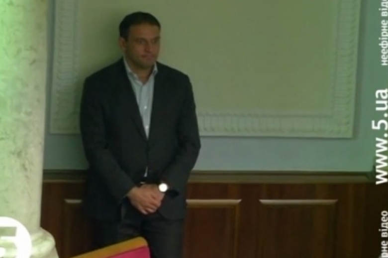 На этот раз парламентарий стоял под стенкой и пытался унять свою левую ногу, зафиксировано на видео 5 канала.