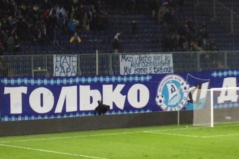 Кроме того, на секторе болельщиков хозяев весь матч висел плакат с надписью "Hate Papa". Об этом в своем Twitter сообщает украинский тележурналист Вадим Скичко.