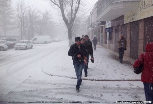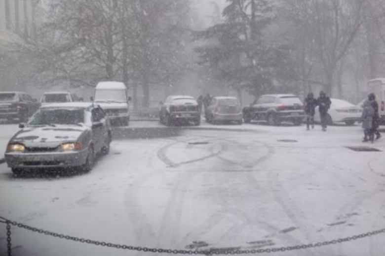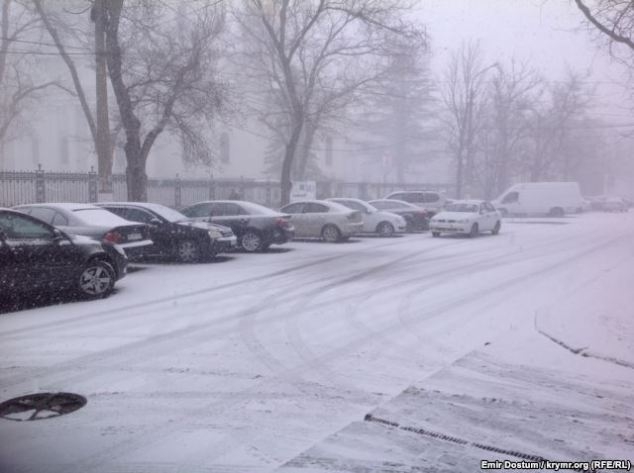 Ранее сообщалось,что в Симферополе с самого утра сегодня идет снег, на трассе Симферополь-Алушта образовалась большая пробка.