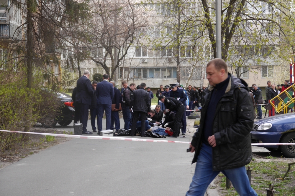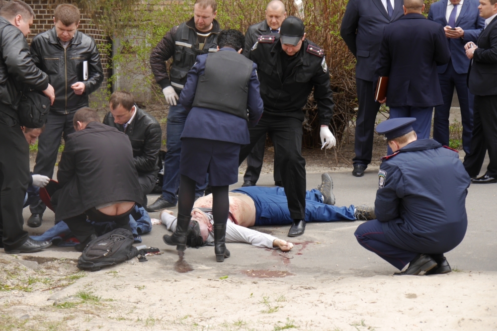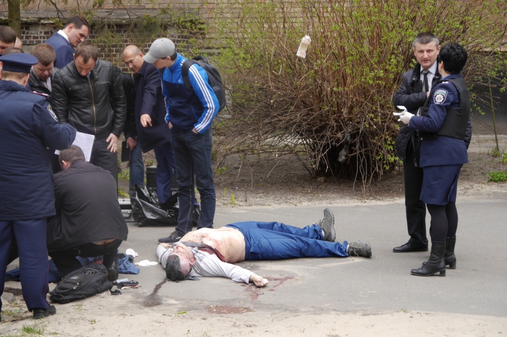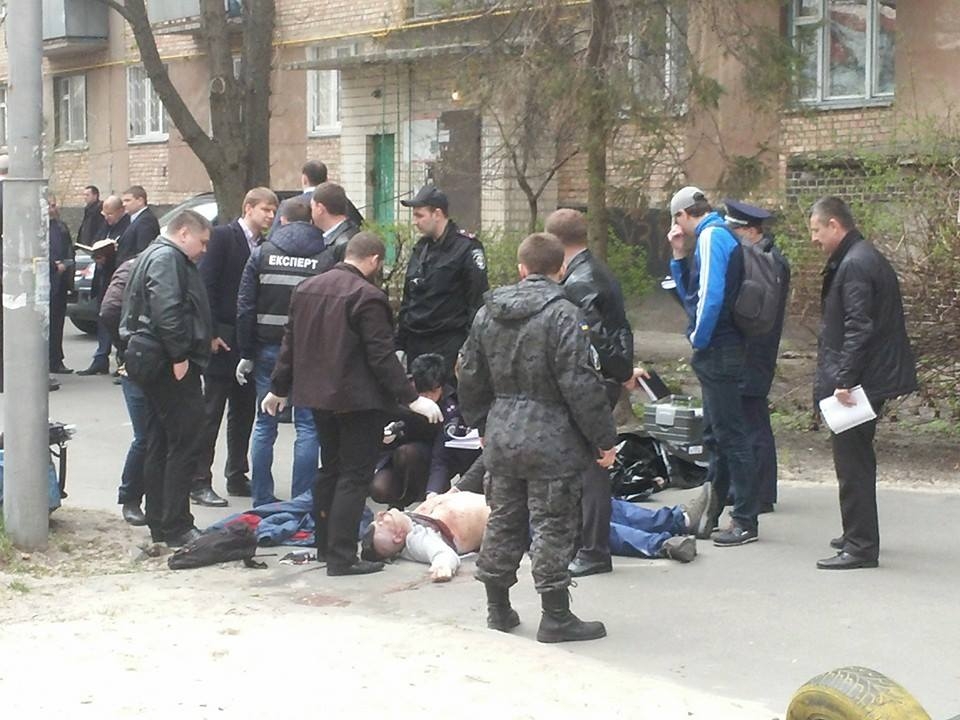 Сегодня возле подъезда собственного дома в Киеве был расстрелян скандальный украинский писатель и журналист Олесь Бузина. В Сеть уже попали снимки с места происшествия