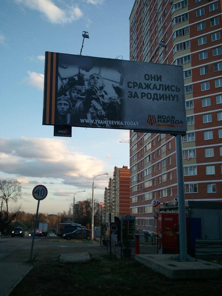 В подмосковном городке Ивантеевка ко Дню Победы на билборде появиличь плакаты с надписью "Они сражались за Родину".