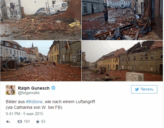 Вечером 5 мая на северные районы Германии обрушился торнадо, в результате которого пострадали несколько населенных пунктов.