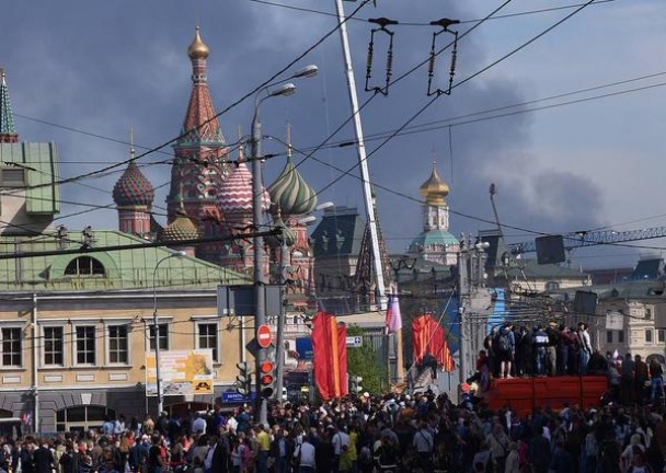 Утром в субботу, 9 мая, в столице России вспыхнул пожар. К обеду площадь горящей территории увеличилась до 1000 квадратных метров