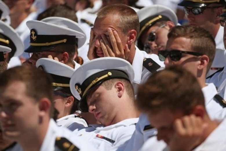 В Сеть попало видео, на котором показано, как даже самые стойкие и тренированные выпускники Военно-морской академии уснули под нудную и официозную речь американского Байдена