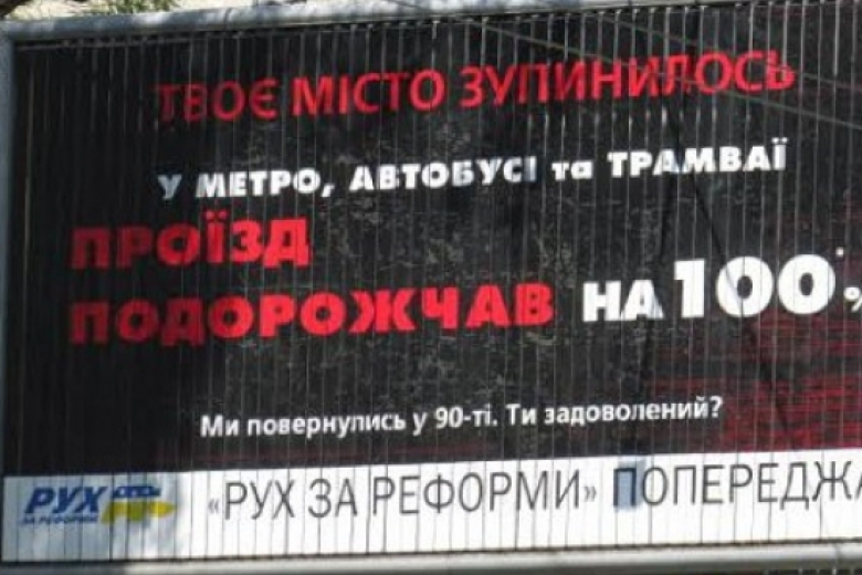 Напомним, на прошлой неделе, КП "Киевреклама" сняла в городе все борды общественной организации "Рух за реформи". На демонтированных рекламных площадках общественная организация демонстрировала через призму цифр неэффективность управления киевских властей в городе, и спрашивала у горожан, довольны ли они таким положение в столице.