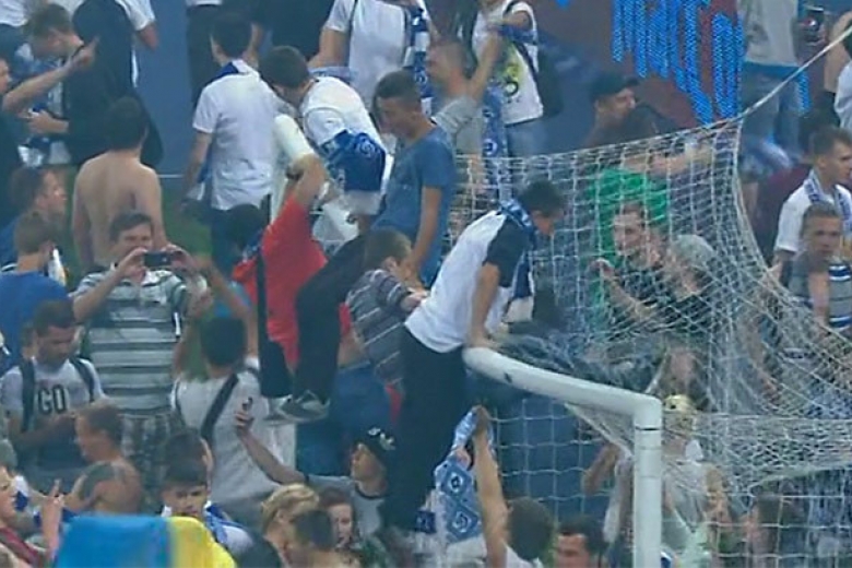 Напомним, что накануне сразу после окончания матча Динамо - Шахтер фанаты выбежали на поле, сломали ворота и срезали сетку. Стоит отметить, что президент клуба Игорь Суркис в комментарии официальному сайту "бело-синих" заявил, что понять болельщиков можно: "Накал был настолько велик, что болельщики не сдержали эмоций и выбежали на поле. Думаю, им можно это простить. Но впредь на международных матчах, если мы хотим играть не при пустых трибунах, этого делать нельзя".