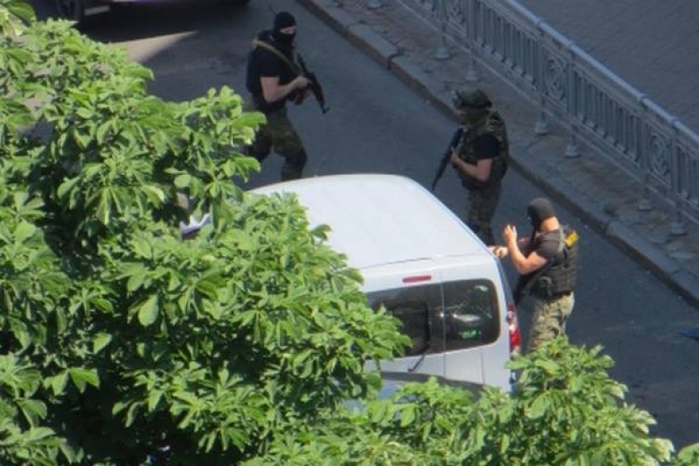 "Стрельба в центре города, по колесам пытавшегося скрыться автомобиля - крайняя мера, но сегодня она была необходима. Мошенники, курьеры преступной группы, пытались скрыться -избежать задержания с поличным - оказали сопротивление милиции, но - были блокированы и задержаны боевым спецподразделением МВД в центре Киева.