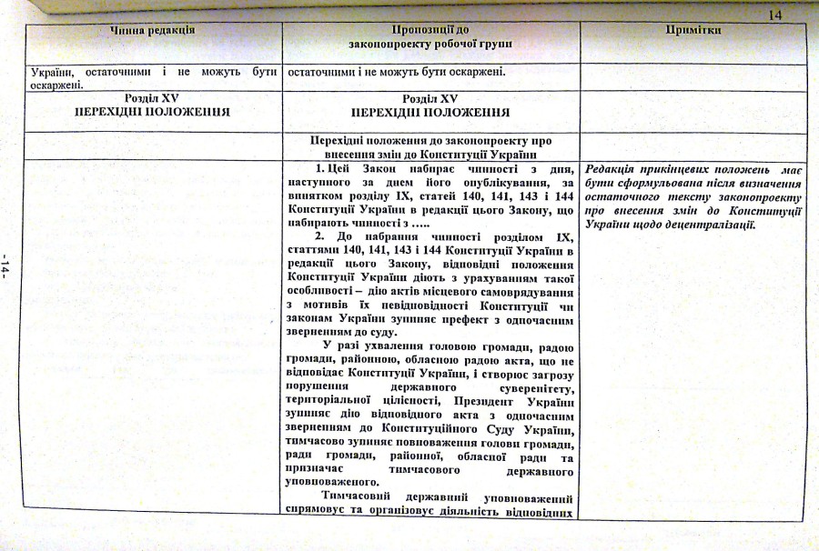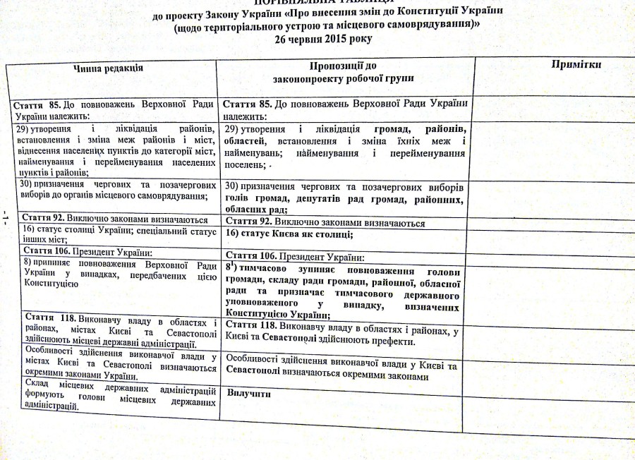 Пока что проект изменений «черновой» и только будет широко обсуждаться депутатами на заседаниях фракций. И вполне может оказаться, что его ждет судьба предыдущей «сравнительной таблицы», наработанной группой Князевича – Писаренко. По нашим данным, те изменения в Конституцию, связывавшие президента по рукам и ногам, были отправлены в Венецианскую комиссию для анализа, но после победы Порошенко на выборах отозваны обратно.