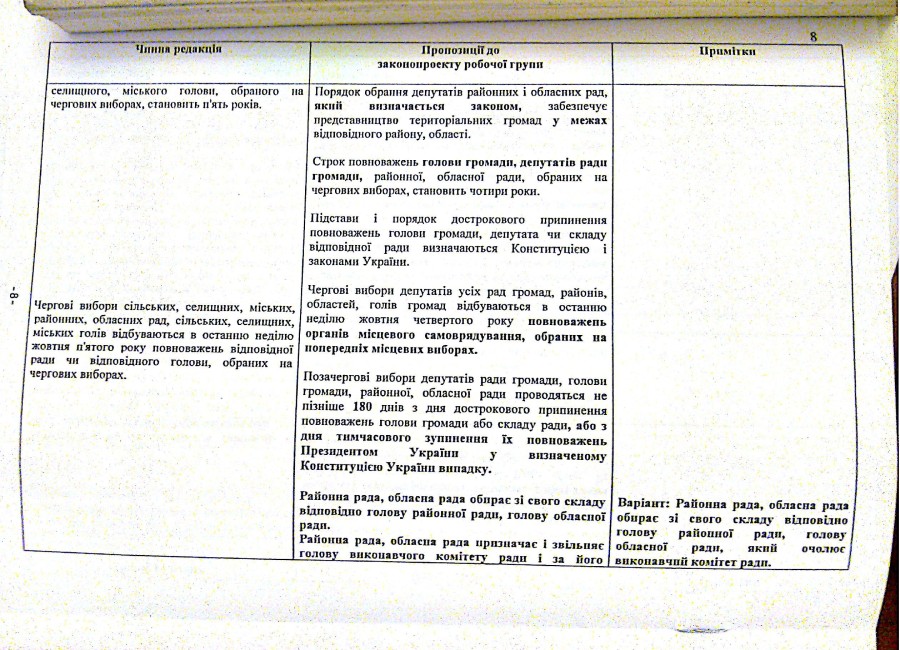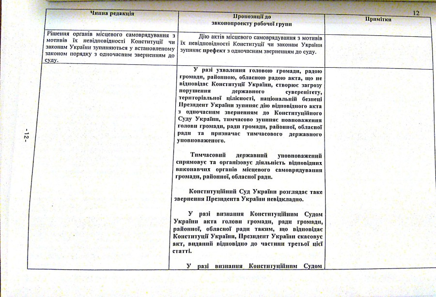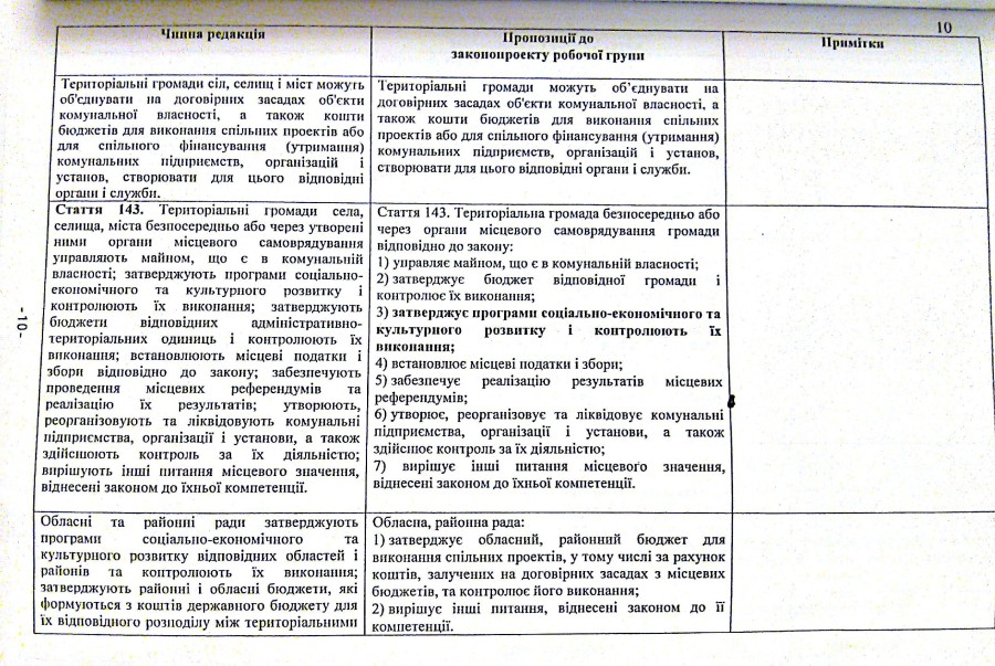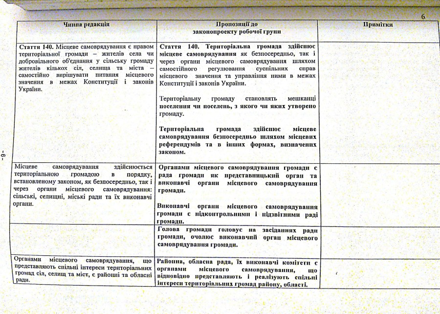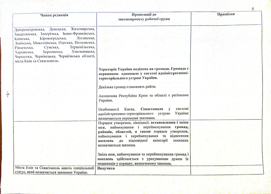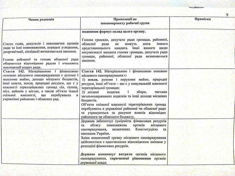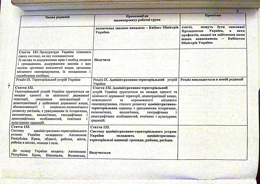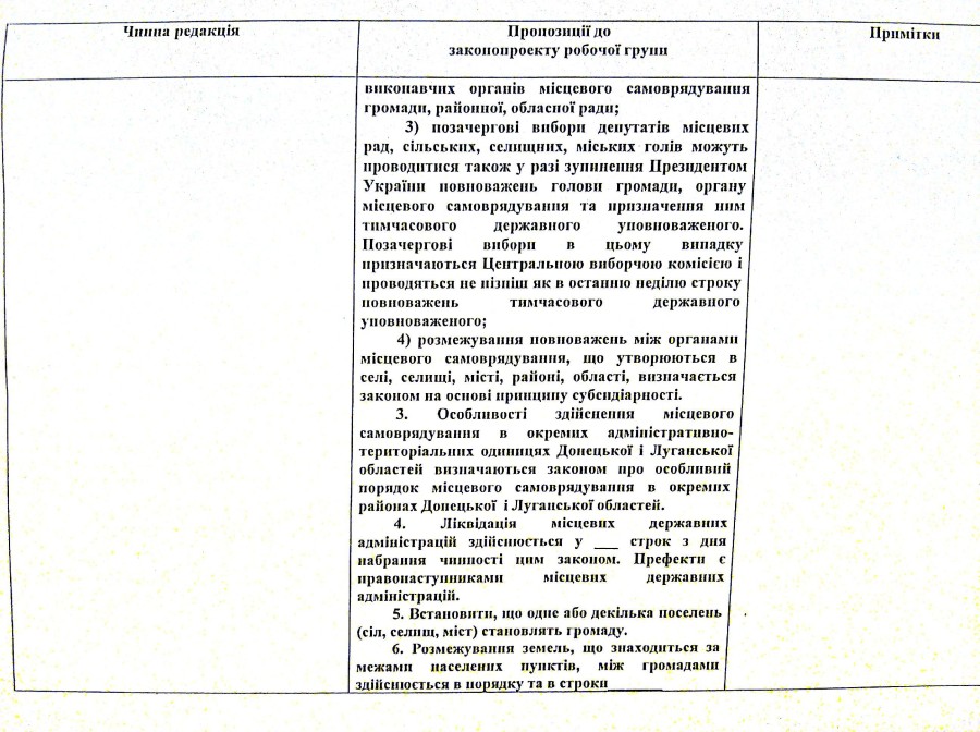 Большие изменения претерпел раздел о местном самоуправлении, что логично, учитывая риторику нового Президента о расширении прав регионов. Областные госадминистрации ликвидируются, а вместо них во всех областях, а также Киеве и Севастополе будут работать представители Президента. Области переименованы в «регионы», а систему административно-территориального устройства составляют регионы, районы и громады. Исполнительную власть в районах осуществляют исполкомы райсоветов.