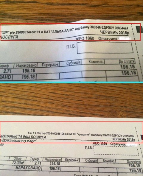 " В субботу пришли платежки за коммунальные услуги. Я через интернет давно плачу, но платежку беру, чтобы не забыть вовремя оплатить. Покачала головой, что куб воды уже 40 гривен и положила на тумбочку. Во вторник краем глаза заметила на доме написанное от руки объявление – "не оплачивайте платежки, они фальшивые!", спешила, поэтому не стала останавливаться читать или фотографировать. А в среду нашла в ящике новую квитанцию!", - рассказала Воронова.