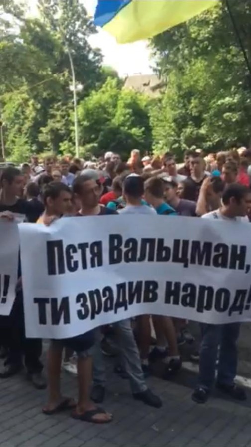 Обозленные на власть участники пикета держали в руках плакаты с надписями: «Вальцман – Порошенко, Коган – Турчинов, Кличко – Этинзон, Гройсман, Капительман – Тимошенко, Бакай – Яценюк, Тягнибок - Фротман», «Еврейское братство распродает Украину!» «В паспорте Ложкин – а как на самом деле?» «Нам нужна проукраинская власть!» и другие.