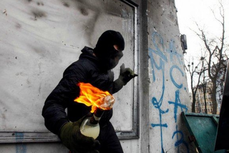 Как сообщили в МВД, в милицию поступило сообщение о том, что в помещение банковского учреждения на улице Валовой во Львове неизвестные бросили горючую смесь ("коктейль Молотова").