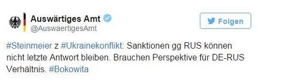 "Санкции против России не могут оставаться последним ответом. Нам нужна перспектива в отношениях между Берлином и Москвой", - говорится в сообщении.