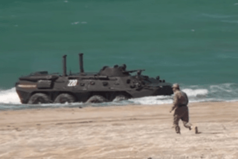В море вышли шесть единиц БТР-80 и 52 военнослужащих. Преодолев около 150 метров по морю, четыре БТР-80 утонули из-за сильного порыва ветра и высокой волны.