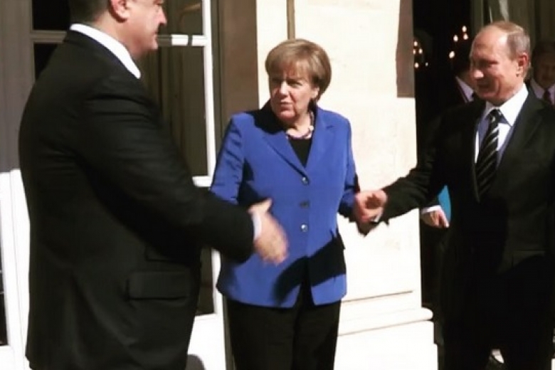 Отметим, что рукопожатие Порошенко и Путина во время минских переговоров в феврале 2015 года также "модерировала" Меркель.