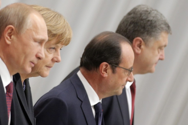 Президент подчеркнул, что главными темами обсуждения в Париже были сроки и шаги по ускорению и усилению имплементации Минских соглашений. При этом он отметил, что «результаты чрезвычайно убедительны», но отметил, что «если какой-либо пункт Минских договоренностей не выполняется, то существует ответственность - санкции, их усиление и продолжение». «Других механизмов у нас нет», - сказал он.