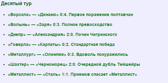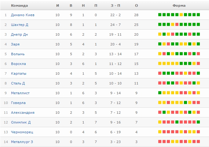 Динамо и Шахтер удерживают первые позиции в турнирной таблице. Полтавская Ворскла по-крупному проиграла команде Реброва, Металлист не сумел одолеть Сталь, а луганская Заря разгромила "волынян".
