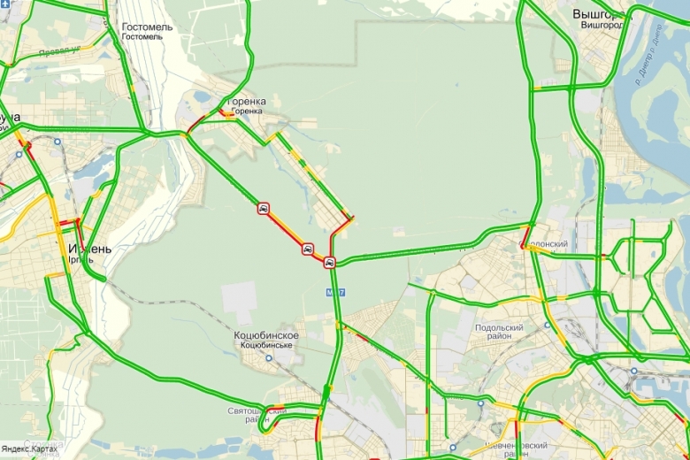 Сегодня утром жители западного столичного пригорода массово опоздали на работу. Виной всему стала многокилометровая пробка, которая растянулась от поселка Гостомель до самого КП Киев.