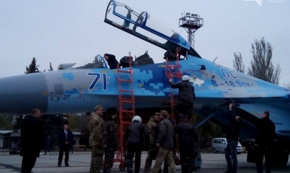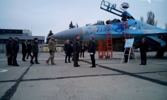 Президент Петр Порошенко в ходе рабочего визита в Запорожье совершил испытательный полет на модернизированном истребителе Су-27.