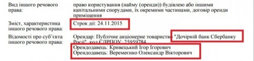 В то же время известно, что Сбербанк России покинул здание еще в августе нынешнего года из-за протестов активистов-сторонников прерывания любых экономических отношений с Российской Федерацией. Отмечается, что акции проводила общественная организация "Развитие общества", соучредителем которой является Александр Веремеенко, которая требовала закрыть отделения российских банков. Однако, активисты приходили только под финучреждения на ул. Черновола или на Грабовского, но не на Валовой, 4. Как отмечает издание, имущество Игоря Кривецкого и Александра Веремеенко находится в аресте. Согласно государственному реестру отягощений, арест на имущество наложен еще в феврале 2012 года. Представитель Александра Веремеенко Константин Маловский сообщил, что договор с "Сбербанком России" был расторгнут в августе этого года. Тогда же, в августе, Кривецкий с Веремеенко заключили соглашение об аренде с компанией Roshen на три года. В то же время по словам пресс-секретаря Свободы Кристины Равлюк, Игорь Кривецкий удивился, когда узнал, что его помещения сдавали в аренду российскому банку. Также издание отмечает, что согласно данным госреестра прав на недвижимое имущество, Кривецкий и Веремеенко действительно предоставили право управления имуществом члену партии Свобода Людмиле Высочанской. Но право управлять имуществом спонсора партии она получила только в 2012 году, через два года после заключения сделки с Сбербанком России. Напомним, в июле неизвестные совершили поджог отделения Сбербанка России на улице Валовой, а также разбили окна в зданиях еще двух отделений данного банковского учреждения.