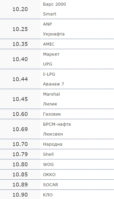 В столице и области цена газа снова немного подросла. Самый дешевый газ уже по 10.20 гривен.