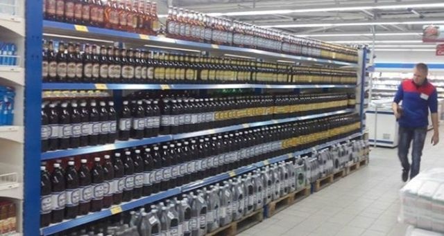 В крымских супермаркетах имитируют изобилие продукции, заполняя полки товарами одной и той же марки.