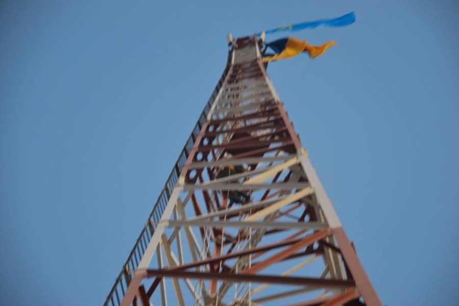Участники транспортной блокады Крыма похвастались очередным "достижением". На этот раз они установили украинский и крымскотатарский флаги на наблюдательной башне и и на мосту в 10 метрах от границы полуострова.